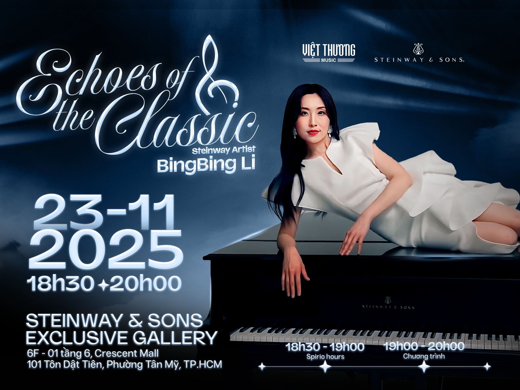 Nằm trong chuỗi sự kiện đánh dấu lần đầu tiên Steinway Artist BingBing Li biểu diễn tại Việt Nam, Steinway & Sons hân hạnh đồng hành cùng Steinway Artist BingBing Li mang đến một đêm nhạc đặc sắc tại Steinway Gallery HCM.