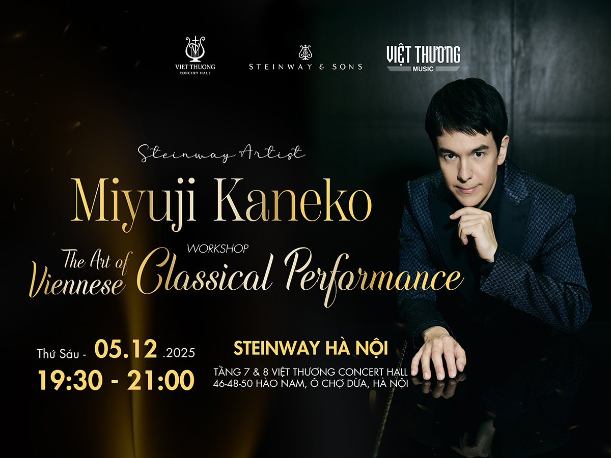 Nằm trong chuỗi sự kiện Khai trương Flagship Store Việt Thương Music Hà Nội, Steinway hân hạnh giới thiệu workshop “The Art of Viennese Classical Performance” cùng Steinway Artist Miyuji Kaneko - chương trình mang đến cho người yêu piano góc nhìn sâu hơn về tinh thần Vienna qua các tác phẩm của Mozart, Haydn và Beethoven giai đoạn đầu.
